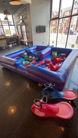Keep your toddlers happy and active with our fantastic blow up soft play,which comes with shapes,ball pool,ride on and hoppers ,youngsters can play for hours and socialize with each other in a soft, safe environment, giving parents some much-needed time to relax knowing that their kids are happy and learning together.